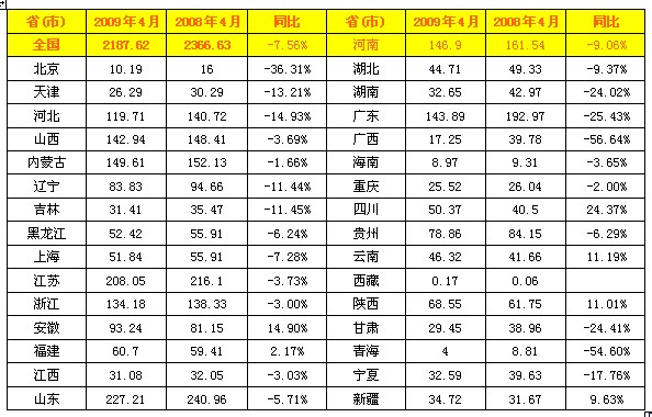2009年4月全國火電發(fā)電量統(tǒng)計(jì)