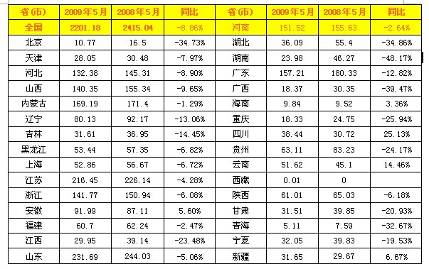 2009年5月全國(guó)火電發(fā)電量統(tǒng)計(jì)