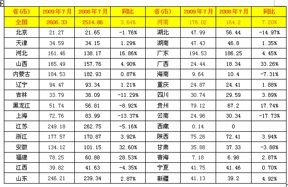 2009年7月全國火電發(fā)電量統(tǒng)計