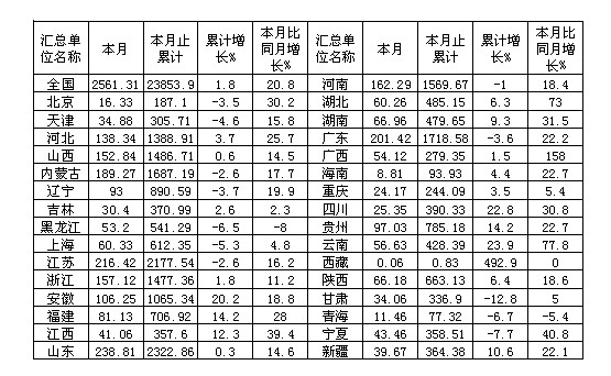 2009年10月全國(guó)火電發(fā)電量統(tǒng)計(jì)