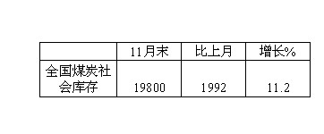 2008年11月全國煤炭社會庫存統(tǒng)計