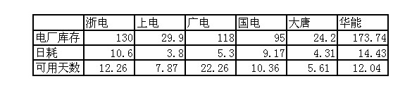 2009年12月4日直供電廠煤炭庫存統(tǒng)計(jì)