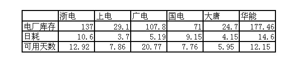 2009年12月7日直供電廠煤炭庫存統(tǒng)計
