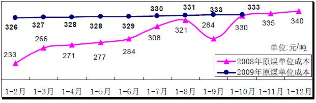從成本看:據(jù)統(tǒng)計,隨著各類煤炭企業(yè)成本費用同比繼續(xù)上升,1-10 月,全國大型煤炭企業(yè)原煤單位成本333.10 元/噸,同比增加2.21 元/噸,增長0.67%;比1-9 月增加0.58元/噸,增長0.17%。原選煤單位成本381.36 元/噸,同比增加8.61 元/噸,增長2.31%;比1-9 月增加1.62 元/噸,增長0.43%。