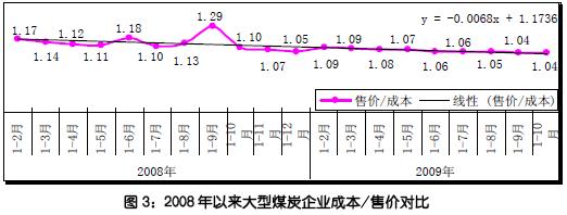1、大型煤炭企業(yè)經(jīng)濟運行情況:大型煤炭企業(yè)經(jīng)營狀況良好,價格和成本環(huán)比基本持平,利潤同比降幅收窄,應收賬款同比增幅出現(xiàn)回落,企業(yè)虧損面比1-9 月縮小 。