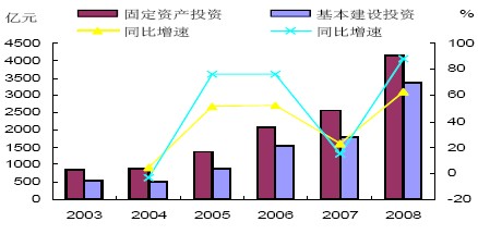 2、需求端:未來相對確定,基建和房地產(chǎn)需求有望繼續(xù)維持 圖2:近幾年鐵路行業(yè)固定資產(chǎn)和基本建設(shè)投資