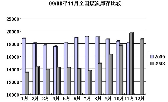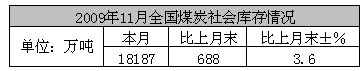 2009年11月全國煤炭社會(huì)庫存統(tǒng)計(jì)