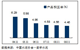 在水泥產(chǎn)量大幅增長的背景下,1~11月的全國水泥產(chǎn)品積壓率仍延續(xù)了近幾年連續(xù)下降的趨勢,為6.07%。產(chǎn)品積壓率下降的原因,主要原因是,市場需求好于預(yù)期,西北、西南局部地區(qū)還出現(xiàn)供不應(yīng)求;而華東地區(qū)為四季度旺季提價做準(zhǔn)備,持續(xù)減少產(chǎn)品庫存。