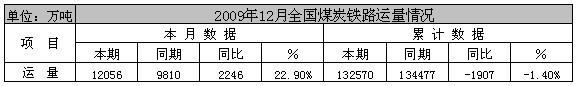 2009年1-12月份我國煤炭鐵路運(yùn)輸情況統(tǒng)計