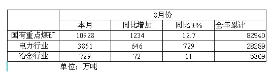2008年8月我國(guó)煤炭銷量情況統(tǒng)計(jì)