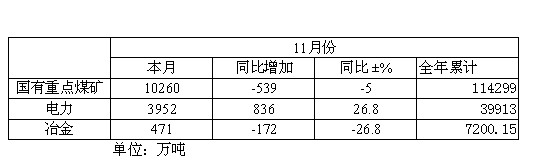 2008年11月我國煤炭銷量情況統(tǒng)計