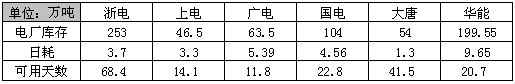 2010年2月12日直供電廠煤炭庫(kù)存統(tǒng)計(jì)