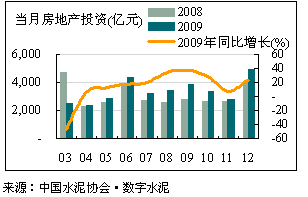 2009年我國(guó)完成房地產(chǎn)開(kāi)發(fā)投資36,231.71億元,比上年增長(zhǎng)16.1%,增速比1~11 月回落1.7 個(gè)百分點(diǎn)。12 月當(dāng)月房地產(chǎn)投資完成4,960.79億元,同比增長(zhǎng)22.97%。
