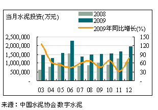 ——1~12月份,全國(guó)水泥行業(yè)累計(jì)投資額為17,007,241萬(wàn)元,同比增長(zhǎng)61.75%,當(dāng)月水泥投資額為1,951,187萬(wàn)元,同比增長(zhǎng)了78.48%;