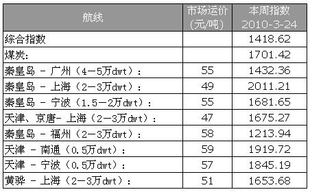 3月24日我國沿海主要煤炭運(yùn)輸線路運(yùn)價(jià)情況