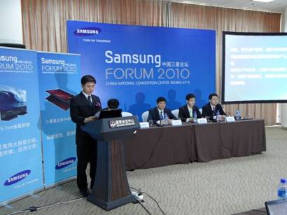 中國論壇,北京 - 2010年4月7日 –作為三星電子旗下重要戰(zhàn)略品牌之一的三星商用,于4月7日舉辦的中國三星論壇上舉辦了專場媒體會,媒體會在主持人“三星商用公關總監(jiān)吳小聰”的開場介紹中揭幕,三星電子中國商用事業(yè)部部長安風善進行了致辭,三星電子中國商用事業(yè)部高級總監(jiān)呼東風就2010年三星商用產(chǎn)品及發(fā)展戰(zhàn)略進行了介紹,商用大屏顯示器、商用筆記本電腦、商用電視的產(chǎn)品經(jīng)理現(xiàn)場與眾多媒體進行了溝通,并就各產(chǎn)品2010年產(chǎn)品、渠道、行業(yè)規(guī)劃與戰(zhàn)略進行了介紹。