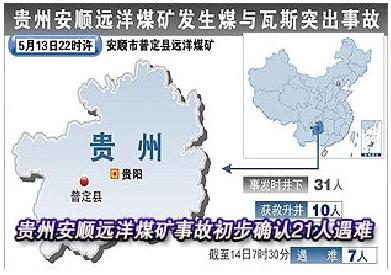 13日晚發(fā)生的貴州省安順市普定縣貓洞鄉(xiāng)遠(yuǎn)洋煤礦煤與瓦斯突出事故,截至14日9時(shí)30分,搶險(xiǎn)人員已發(fā)現(xiàn)21名礦工遇難,事故搶險(xiǎn)搜救工作目前仍在進(jìn)行中。國家煤監(jiān)局副局長(zhǎng)王樹鶴已率相關(guān)人員趕赴事故現(xiàn)場(chǎng)指導(dǎo)事故調(diào)查及善后工作。