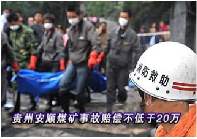 16日獲悉,貴州安順5·13礦難事故賠償問題已經(jīng)展開,每位遇難礦工賠償款將不低于20萬元。