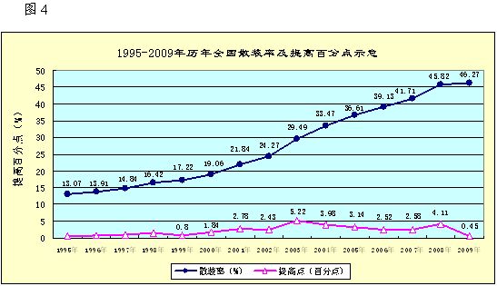 2009年全國(guó)水泥散裝率僅提高0.45個(gè)百分點(diǎn),低于近十五年以來(lái)散裝率平均每年提高2.25個(gè)百分點(diǎn)的平均水平。分析其主要原因是: