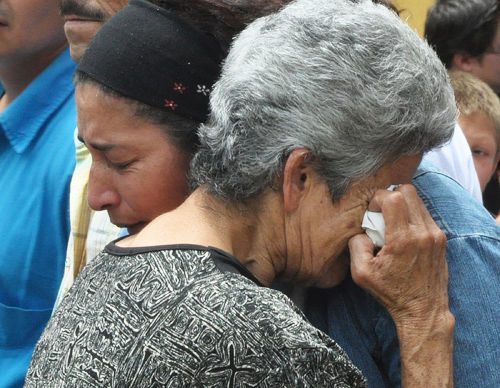 6月17日,兩名礦工家屬在事故煤礦外悲痛地哭泣。