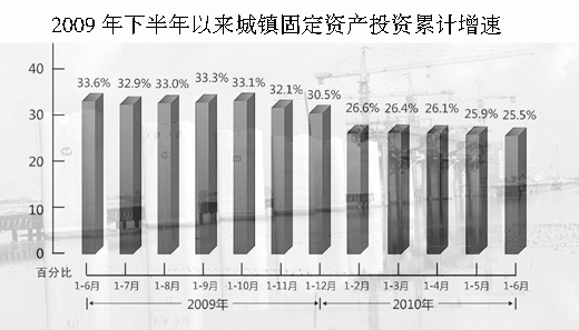 據(jù)國家統(tǒng)計局公布的數(shù)據(jù),今年上半年,全社會固定資產(chǎn)投資114187億元,同比增長25%,其中,城鎮(zhèn)固定資產(chǎn)投資增長25.5%,比1—5月份回落0.4個百分點。