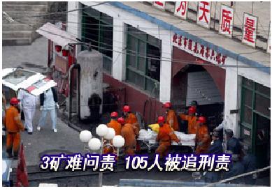 我國依法對(duì)平頂山兩起礦難和湘潭礦難共三起特別重大事故71名事故責(zé)任人給予黨紀(jì)、政紀(jì)處分;105名涉嫌犯罪的責(zé)任人已被移送司法機(jī)關(guān)依法追究刑事責(zé)任。