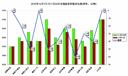 12月1日與11月24日國內部分生產企業(yè)出廠價格對比圖(單位:元/噸)