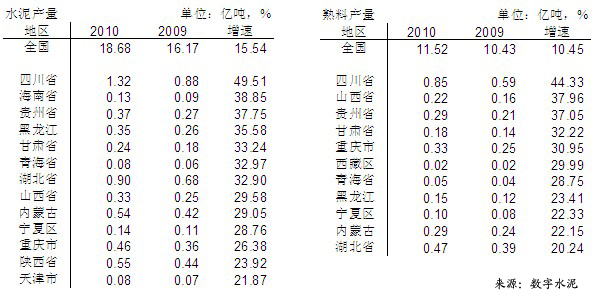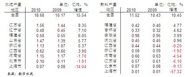 據國家統(tǒng)計局統(tǒng)計結果,2010年水泥、熟料產量揭曉。