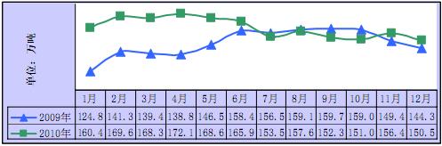 2010 年全年累計(jì),生鐵、粗鋼和鋼材產(chǎn)量分別為 5.90 億噸、6.27 億噸和 7.96 億噸,同比分別增長(zhǎng) 7.4%、9.3%和 14.7%,增幅分別比 2009 年回落 8.5 個(gè)百分點(diǎn)、4.2 個(gè)百分點(diǎn)和3.8 個(gè)百分點(diǎn)。
