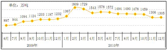 據(jù)印度國家礦業(yè)開發(fā)公司一位負(fù)責(zé)人透露,該公司出口鐵礦石價(jià)格將從 2011 年 1 月起上調(diào) 3%,該價(jià)格將適用整個(gè)第一季度,但并未正式公布,隨后又有報(bào)道稱,印度政府計(jì)劃在 2011 年 4 月 1 日開始的 2011-2012 財(cái)政年度對(duì)鐵礦石出口統(tǒng)一加征 20%的出口關(guān)稅,將進(jìn)一步推高國際礦價(jià)。另據(jù)路透社報(bào)道,巴西礦業(yè)巨頭淡水河谷 2011 年 1 月料將季度鐵礦石合約價(jià)格提高 8.8%,至每噸 149.20 美元,這一漲幅是根據(jù)上期(2010 年 9 月 1 日-11 月30 日)普氏指數(shù)的漲幅確定的。2011 年第一季度鐵礦石價(jià)格上漲已成定局。正是基于對(duì)鐵礦石漲價(jià)的預(yù)期,鋼廠、貿(mào)易商早已做好了囤貨準(zhǔn)備,2010 年 11 月鐵礦石進(jìn)口量較 10 月份增長(zhǎng) 25.5%,至 5738 萬噸,12 月進(jìn)口量繼續(xù)微量增長(zhǎng),達(dá)到 5808 萬噸,國內(nèi)鐵礦石庫存持續(xù)上升, 據(jù)蘭格鋼鐵網(wǎng)數(shù)據(jù), 截至 1 月7 日, 全國 19 個(gè)主要港口鐵礦石庫存量升至 8090萬噸。進(jìn)口礦的激增導(dǎo)致鐵礦石市場(chǎng)持續(xù)追漲,短期內(nèi)推高了鋼價(jià),然而,2011 年鋼鐵需求具有很大的不確定性,且第一季度是用鋼淡季,鋼廠轉(zhuǎn)嫁成本壓力可謂困難重重。