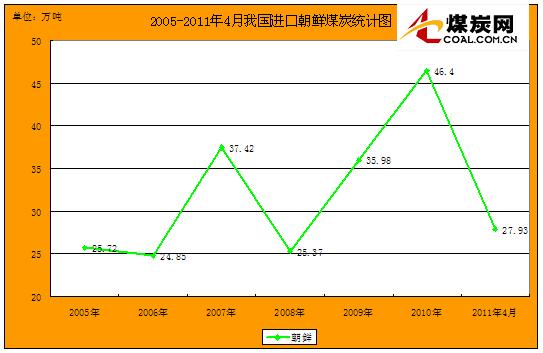 2005-2011年4月我國進(jìn)口朝鮮煤炭統(tǒng)計(jì)圖