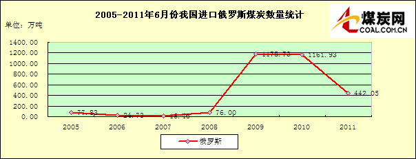 2005-2011年6月份我國進口俄羅斯煤炭數(shù)量統(tǒng)計