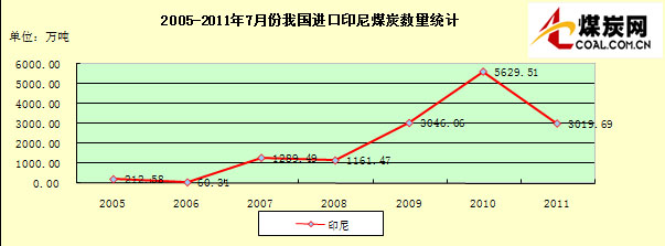 2005-2011年7月份我國進(jìn)口印尼煤炭數(shù)量統(tǒng)計
