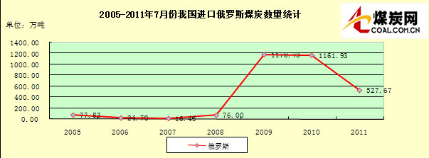 2005-2011年7月份我國(guó)進(jìn)口俄羅斯煤炭數(shù)量統(tǒng)計(jì)