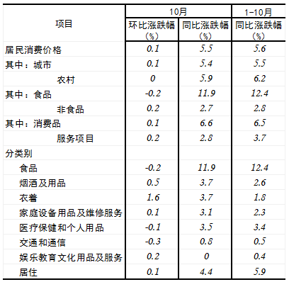 據(jù)測算,在10月份5.5%的漲幅中,去年價格上漲的翹尾因素近1.5個百分點(diǎn),今年新漲價因素約為4.04個百分點(diǎn)。