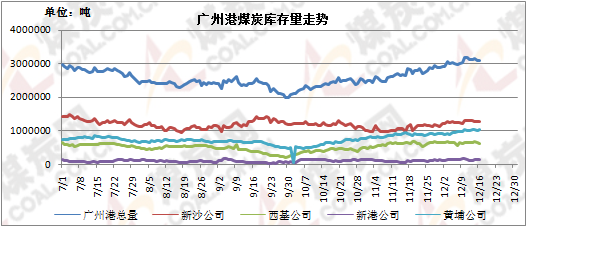 煤炭網(wǎng)信息研究中心截至12月16日的數(shù)據(jù)顯示,本周廣州港煤炭庫(kù)存量一直在310萬(wàn)噸以上的水平居高不下,12月14日更是達(dá)到本周最大庫(kù)存量314.5萬(wàn)噸,直逼廣州港最大場(chǎng)存量,港口煤炭積壓狀況嚴(yán)重,當(dāng)前動(dòng)力煤炭市場(chǎng)集體觀望的形勢(shì)下,港口進(jìn)貨逐步減少,下游需求動(dòng)力不足,出貨更是甚微,港口動(dòng)力煤價(jià)格本周再降。煤炭網(wǎng)信息研究中心截至12月16日的數(shù)據(jù)顯示,本周廣州地區(qū)5000大卡山西優(yōu)混整體較上周下跌50/噸至830元/噸;外貿(mào)煤炭市場(chǎng)方面,4700大卡印尼煤到廣州港價(jià)格本周下降30元/噸至750元/噸,到港南非動(dòng)力煤炭也出現(xiàn)小幅松動(dòng)。