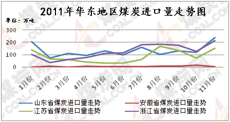 (二)2011年華東地區(qū)煤炭進(jìn)口量整體同比增長14.4%