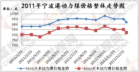 從以下寧波港動力煤炭價(jià)格走勢圖可以看出,2011年寧波港煤炭價(jià)格走勢非常靈敏的反映了國內(nèi)動力煤市場的運(yùn)行規(guī)律,“淡季不淡煤價(jià)走高,旺季不旺煤價(jià)高位持穩(wěn)”、供需寬松煤價(jià)走低、限價(jià)令后煤價(jià)快速滑落均在下圖得以體現(xiàn)。