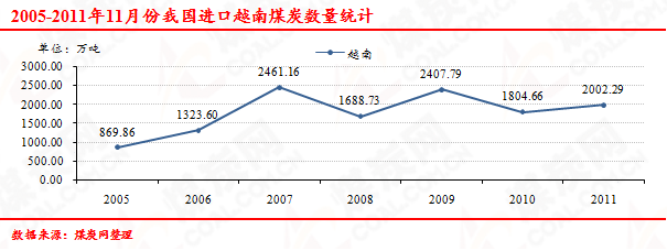 2005-2011年11月份我國進口越南煤炭數(shù)量走勢統(tǒng)計