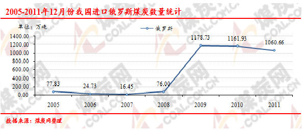 2005-2011年12月份我國進口俄羅斯煤炭數(shù)量走勢統(tǒng)計