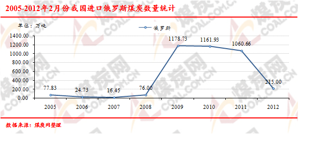 2005-2012年2月份我國進(jìn)口俄羅斯煤炭數(shù)量走勢統(tǒng)計(jì)