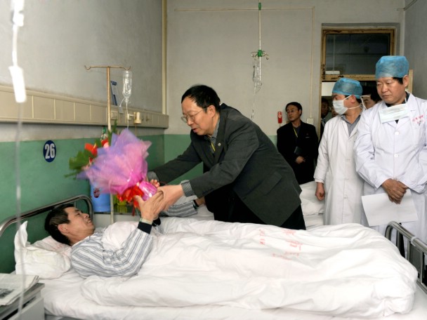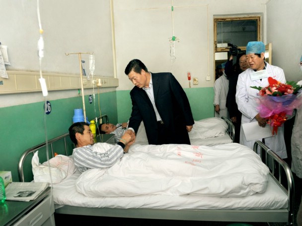 4月9日,中煤集團(tuán)總經(jīng)理王安,副總經(jīng)理曹祖民,黨委副書(shū)記、紀(jì)委書(shū)記、工會(huì)主席王晞一行前往河津市人民醫(yī)院和山西鋁廠(chǎng)醫(yī)院,看望慰問(wèn)在此治療的被困礦工及全體醫(yī)護(hù)人員。