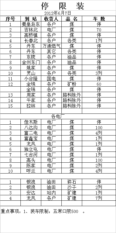 哈鐵路局最新停限裝(6月7日)