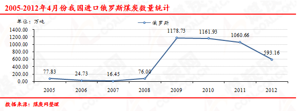 2005-2012年4月份我國(guó)進(jìn)口俄羅斯煤炭數(shù)量走勢(shì)統(tǒng)計(jì)