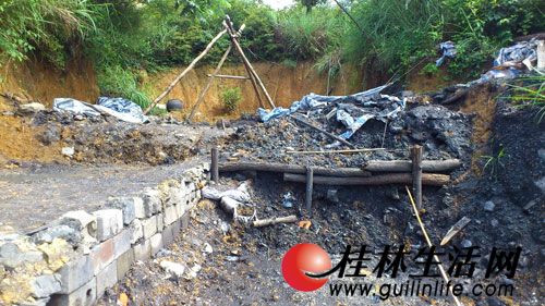 這里原本長(zhǎng)滿雜木的斜坡被開出一處百來平方米的平地,地上有從附近村里接過來的水管和電線,一個(gè)木制三腳架下方是一個(gè)深約10米的垂直窿口。