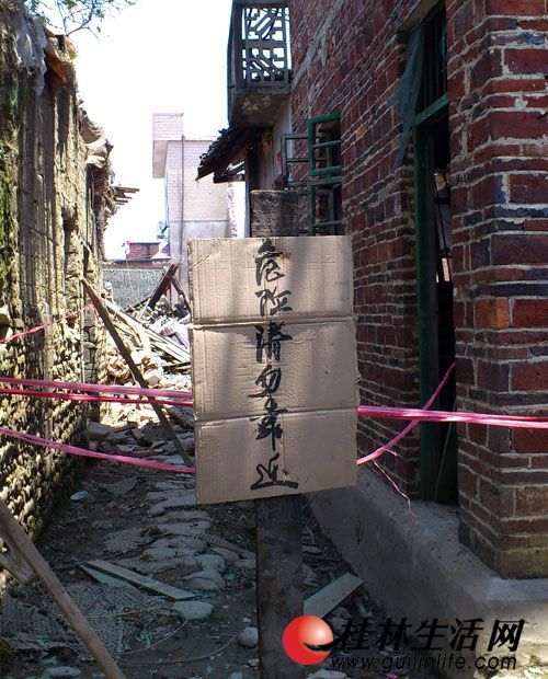 江頭新村爆炸廢墟前的一塊安全警示牌,但對(duì)于這里的村民來說,最大的隱患或許并不是已經(jīng)發(fā)生爆炸的這片廢墟。