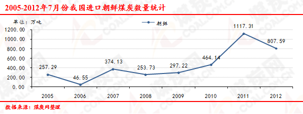 2005-2012年7月份我國(guó)進(jìn)口朝鮮煤炭數(shù)量走勢(shì)統(tǒng)計(jì)