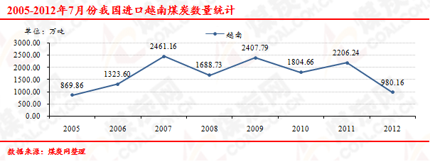 2005-2012年7月份我國進口越南煤炭數量走勢統(tǒng)計