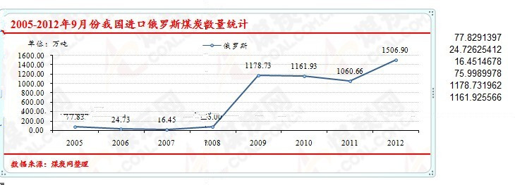 2005-2012年9月份我國進(jìn)口俄羅斯煤炭數(shù)量走勢(shì)統(tǒng)計(jì)