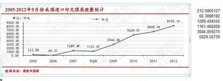 2005-2012年9月份我國進(jìn)口印尼煤炭數(shù)量走勢統(tǒng)計(jì)